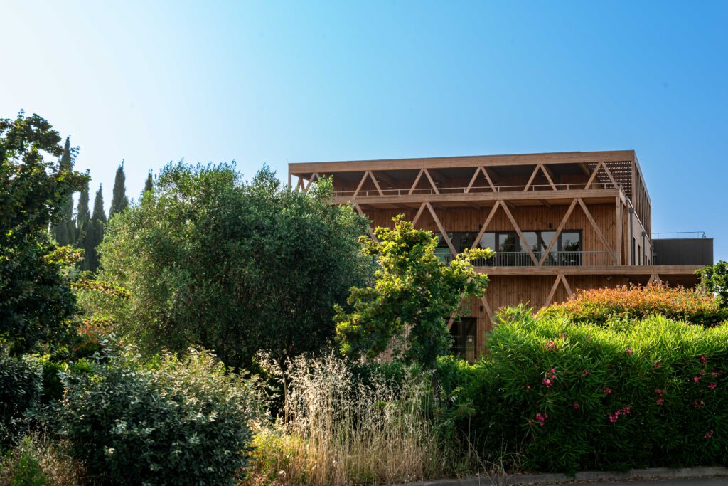 Bois, paille, terre crue, chanvre, isolants végétaux ou matériaux issus de la biomasse sont systématiquement étudiés dès les premières phases en amont, en lien avec les bureaux d’études et les partenaires. Cette approche croise performance technique, confort d’usage, adaptation climatique et sobriété des ressources.