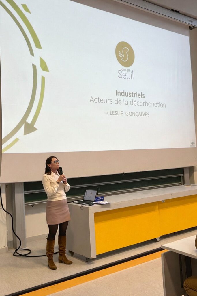 Parmi les intervenants de cette soirée, Leslie Gonçalves, architecte DPLG et cofondatrice du Groupe Seuil, a partagé plusieurs retours d’expérience issus de projets emblématiques tels qu’AEREM, Symétrie, Arcadie, le Collège de Castelnau ou encore le Hall 09.