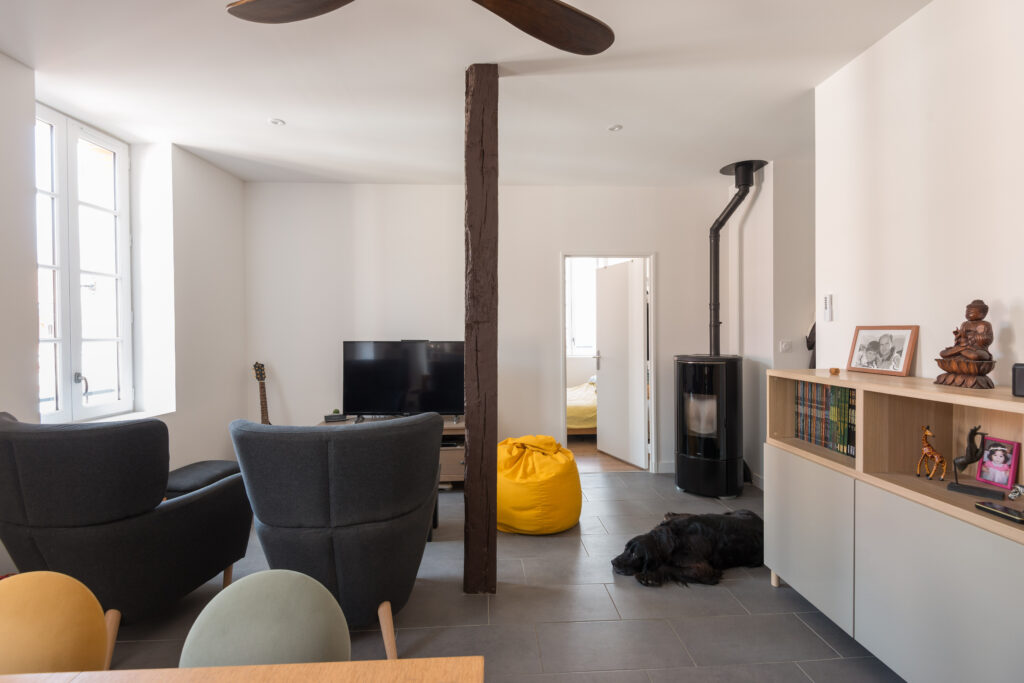 Dès le diagnostic initial, le parti pris est clair : faire avec le déjà-là. Préserver la structure existante, révéler les qualités spatiales du bâti ancien et composer avec ses contraintes, tout en répondant aux exigences contemporaines de confort et d’habitabilité.