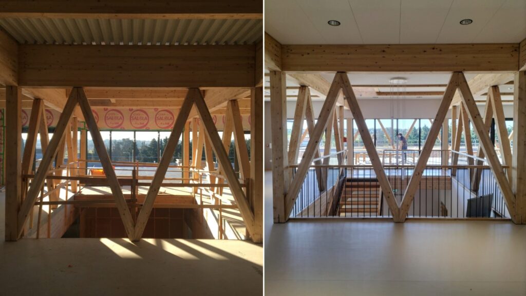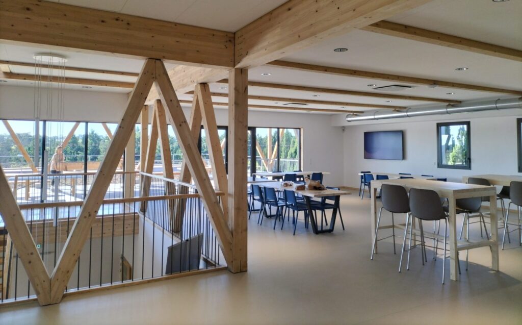 - 245m² de bois français ont été utilisés pour la charpente, contribuant ainsi à l’empreinte environnementale positive du bâtiment