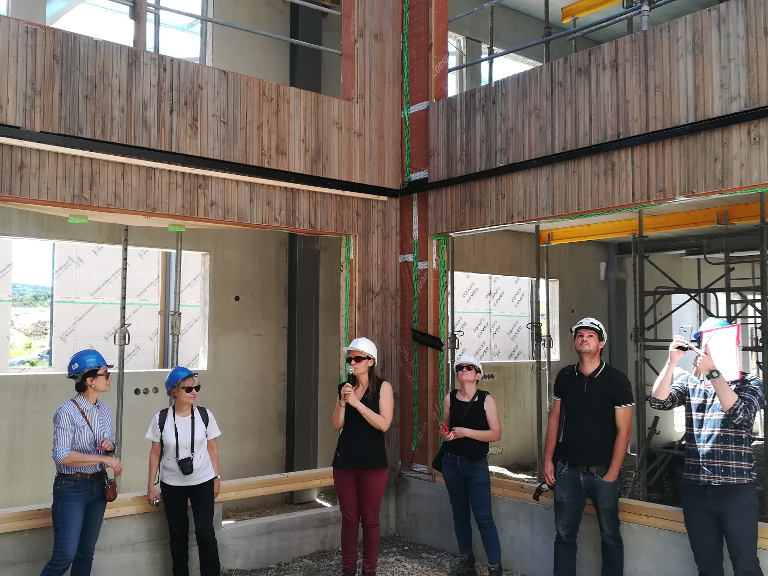 Le 22 juin dernier, Leslie Gonçalves, cofondatrice de Seuil architecture, accueillait sur le chantier de l’usine Aerem Fibois Occitanie, qui fédère les professionnels de la filière bois.